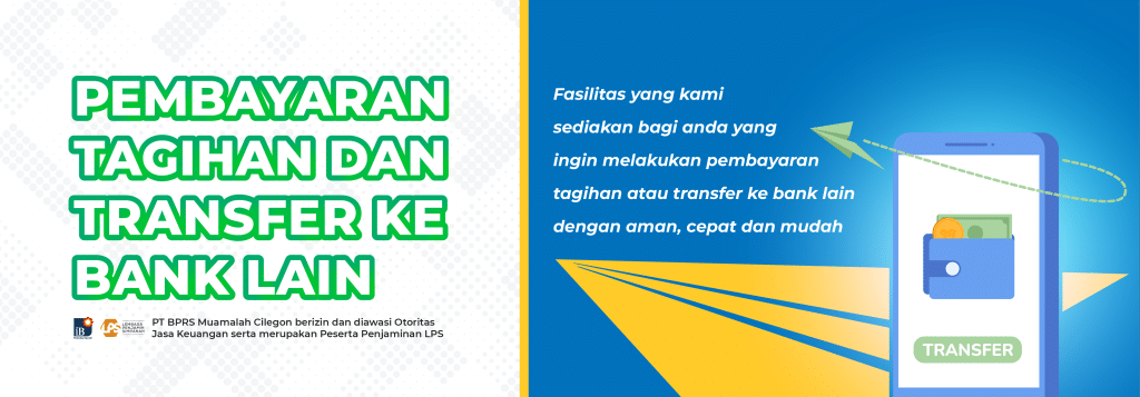 Fasilitas yang disediakan oleh Bank Syariah Muamalah Banten bagi anda yang ingin melakukan berbagai macam pembayaran tagihan dan transfer ke Bank Lain dengan aman, cepat dan mudah